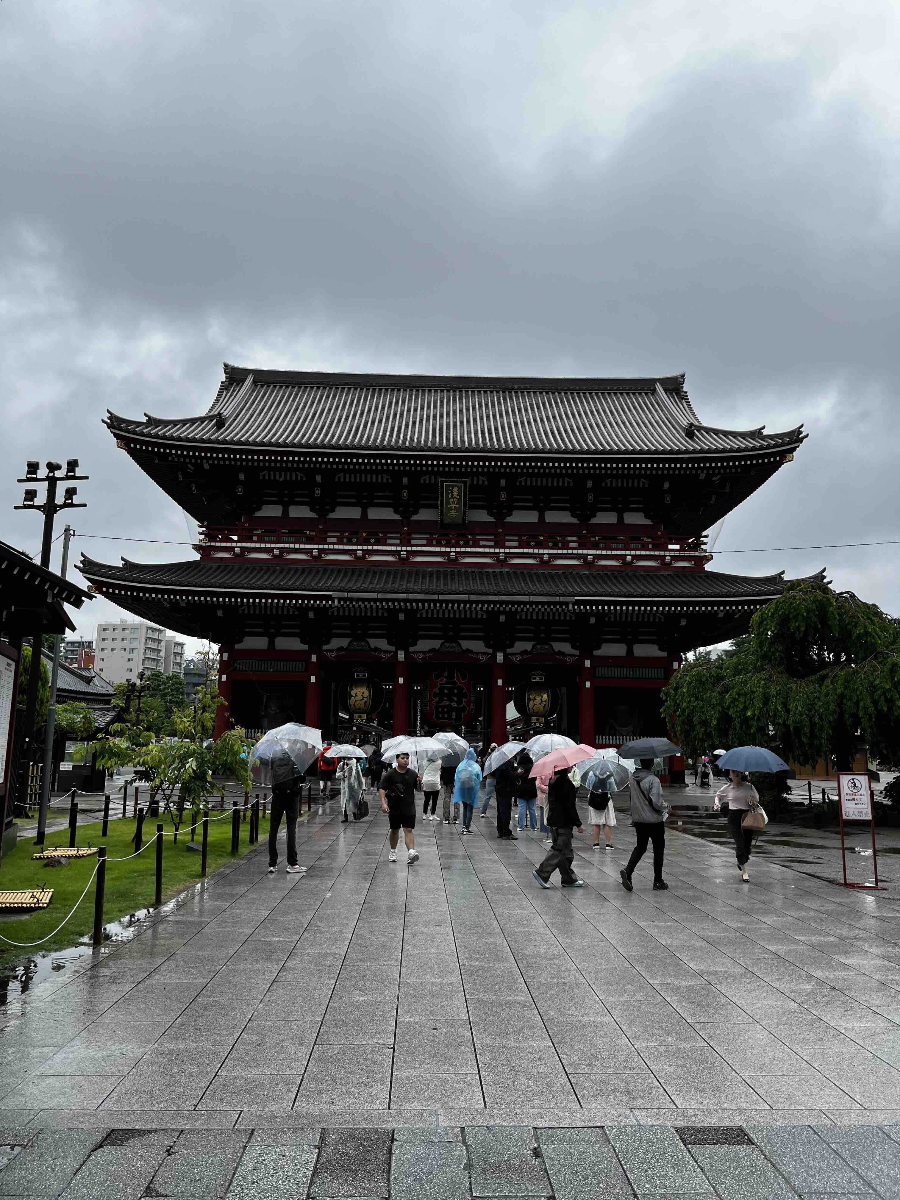 We woke up to overcast conditions and rain, which put a damper on some of our plans. Regardless, we headed to Senso-ji, a shrine in the Asakusa neighborhood of Tokyo. Asakusa used to have a lot of important Buddhist and Shinto shrines, which contributed to the development of Edo. Given the rain, there weren’t too many tourists around, so we could explore the temple grounds unencumbered. My favorite part of the shrine was actually the gardens around it. One thing I have noticed about Japanese gardens is the excellent methodology in garden design; it is not too well-kept and it manages to blend wildness and structure that you see in nature, with rocks and flowers being classic foils to each other.